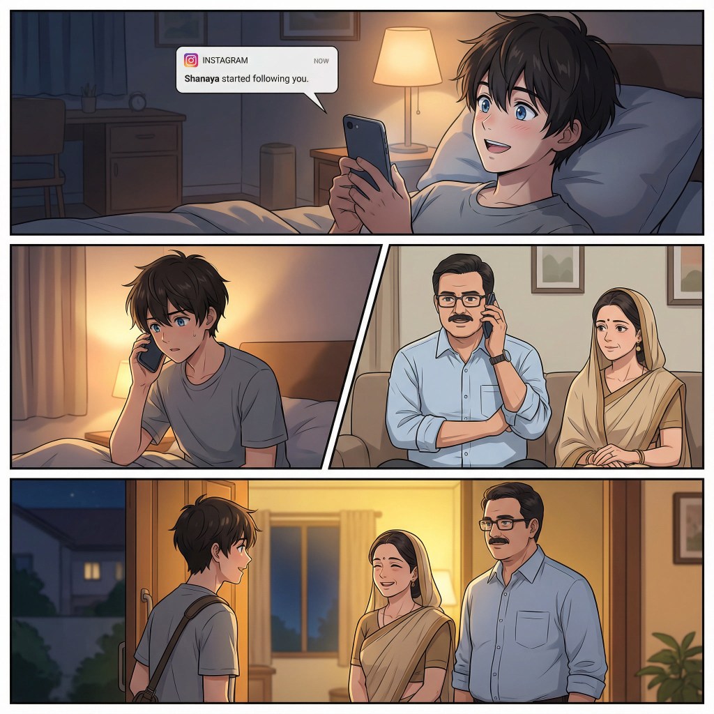 Afterward, I opened my phone and scrolled through Facebook and Instagram. Suddenly, I noticed that Shanaya had started following me on Instagram. I checked out her profile and followed her back. Shortly after, I received a text from her. We had a simple chat, and she mentioned she was about to perform a classical dance at her college. I wished her luck, and then she went offline.
