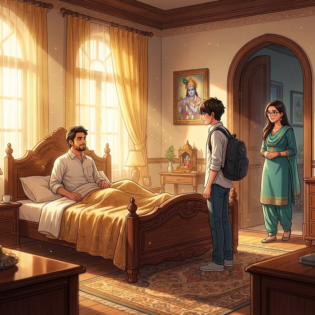 His warmth surprised me—it was a departure from his usual demeanor. Downstairs, Aunt and Grandma awaited me. I touched their feet in respect, and Grandma embraced me warmly, blessing me for the journey ahead.